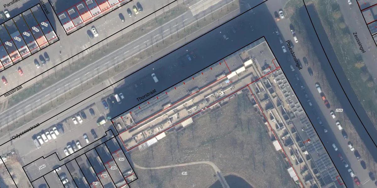 Het perceel waarop Poseidonsingel 22 staat heeft een oppervlakte van 1,5 ha. Dit is een zeer groot perceel. De perceeloppervlakte wordt geregistreerd door het Kadaster. Gedetailleerde informatie over de maten van dit perceel kunt u vinden in het rapport Kadastrale kaart met maatvoering van Poseidonsingel 22.