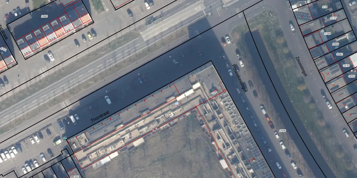 Het perceel waarop Poseidonsingel 32 staat heeft een oppervlakte van 1,5 ha. Dit is een zeer groot perceel. De perceeloppervlakte wordt geregistreerd door het Kadaster. Gedetailleerde informatie over de maten van dit perceel kunt u vinden in het rapport Kadastrale kaart met maatvoering van Poseidonsingel 32.