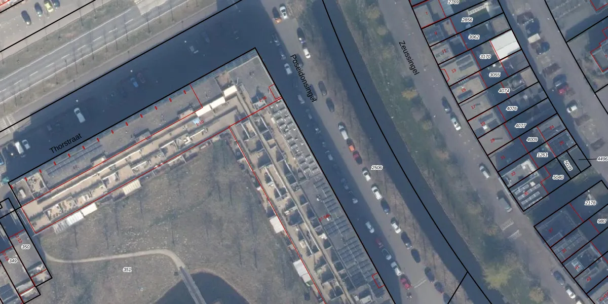 Het perceel waarop Poseidonsingel 40 staat heeft een oppervlakte van 1,5 ha. Dit is een zeer groot perceel. De perceeloppervlakte wordt geregistreerd door het Kadaster. Gedetailleerde informatie over de maten van dit perceel kunt u vinden in het rapport Kadastrale kaart met maatvoering van Poseidonsingel 40.