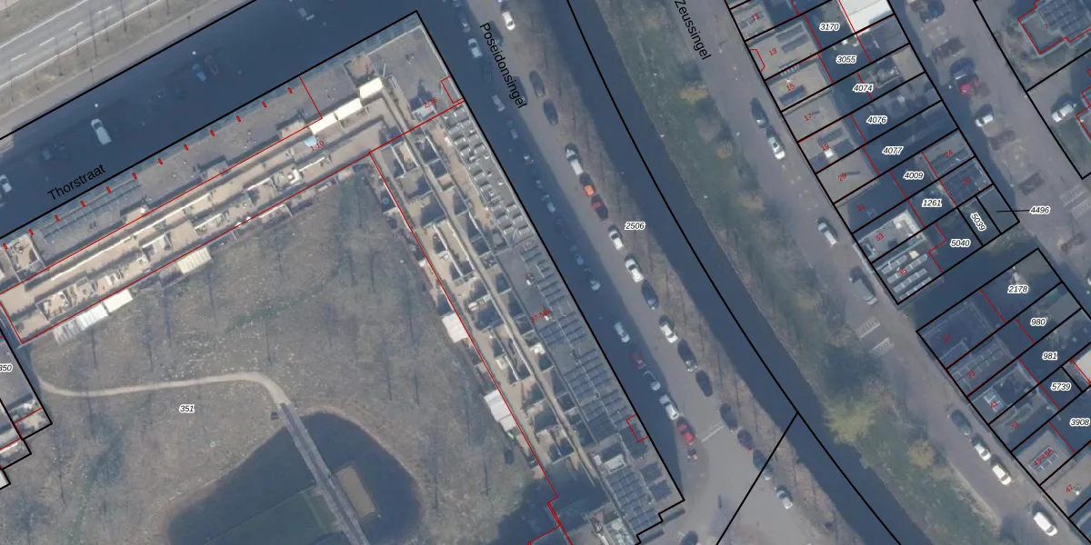Het perceel waarop Poseidonsingel 43 staat heeft een oppervlakte van 1,5 ha. Dit is een zeer groot perceel. De perceeloppervlakte wordt geregistreerd door het Kadaster. Gedetailleerde informatie over de maten van dit perceel kunt u vinden in het rapport Kadastrale kaart met maatvoering van Poseidonsingel 43.