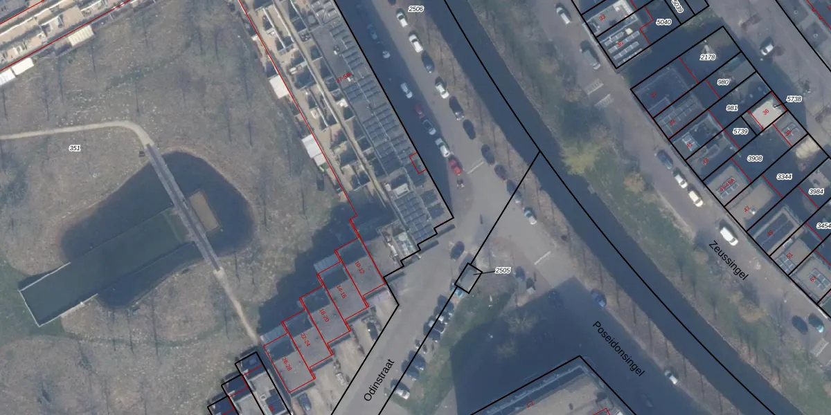Het perceel waarop Poseidonsingel 55-r staat heeft een oppervlakte van 1,5 ha. Dit is een zeer groot perceel. De perceeloppervlakte wordt geregistreerd door het Kadaster. Gedetailleerde informatie over de maten van dit perceel kunt u vinden in het rapport Kadastrale kaart met maatvoering van Poseidonsingel 55-r.