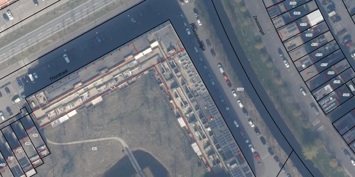 Het perceel waarop Poseidonsingel 56-b staat heeft een oppervlakte van 1,5 ha. Dit is een zeer groot perceel. De perceeloppervlakte wordt geregistreerd door het Kadaster. Gedetailleerde informatie over de maten van dit perceel kunt u vinden in het rapport Kadastrale kaart met maatvoering van Poseidonsingel 56-b.