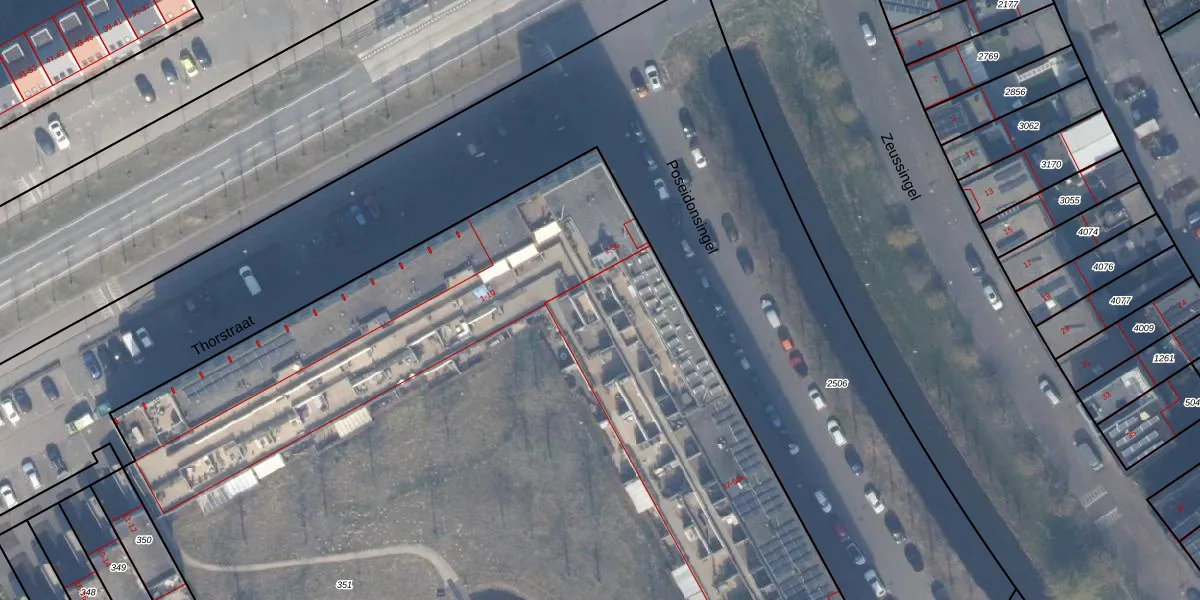 Het perceel waarop Poseidonsingel 57-a staat heeft een oppervlakte van 1,5 ha. Dit is een zeer groot perceel. De perceeloppervlakte wordt geregistreerd door het Kadaster. Gedetailleerde informatie over de maten van dit perceel kunt u vinden in het rapport Kadastrale kaart met maatvoering van Poseidonsingel 57-a.