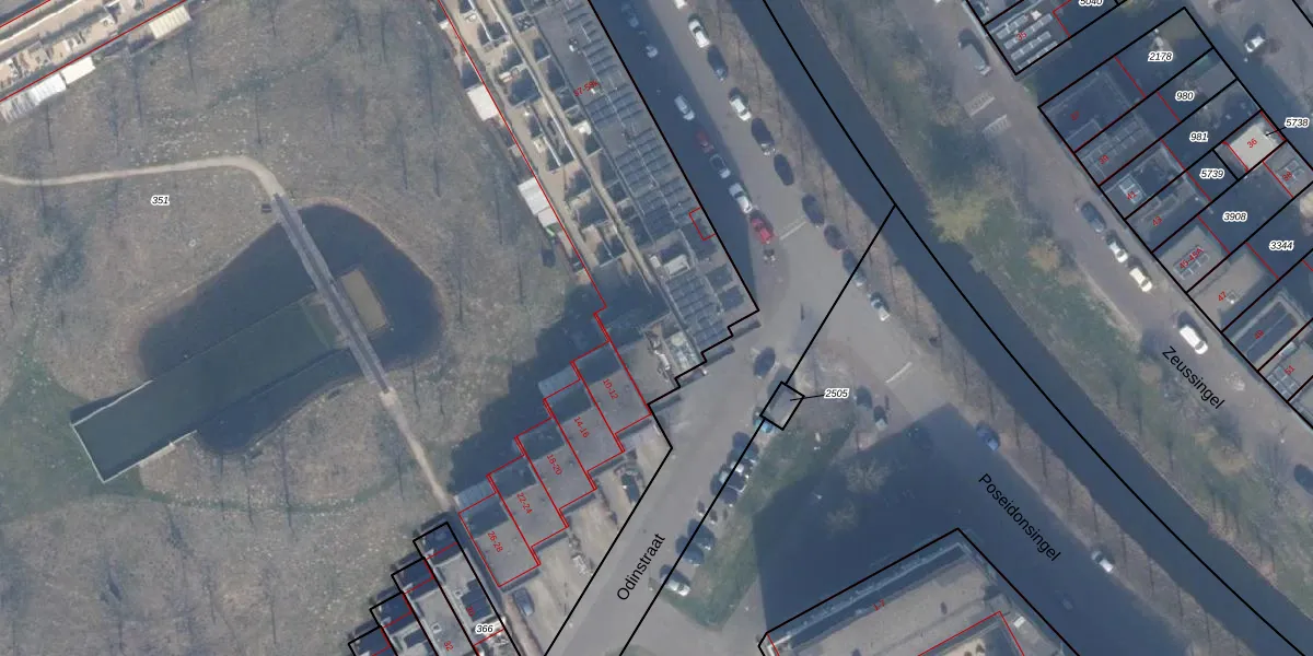 Het perceel waarop Poseidonsingel 57-n staat heeft een oppervlakte van 1,5 ha. Dit is een zeer groot perceel. De perceeloppervlakte wordt geregistreerd door het Kadaster. Gedetailleerde informatie over de maten van dit perceel kunt u vinden in het rapport Kadastrale kaart met maatvoering van Poseidonsingel 57-n.