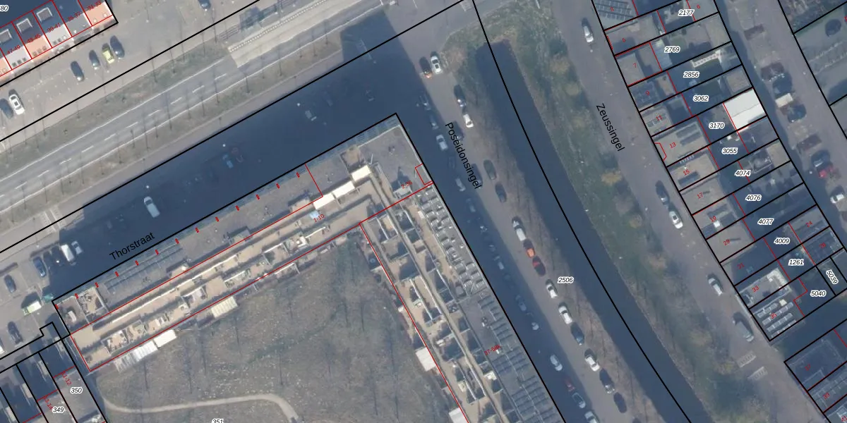 Het perceel waarop Poseidonsingel 58-a staat heeft een oppervlakte van 1,5 ha. Dit is een zeer groot perceel. De perceeloppervlakte wordt geregistreerd door het Kadaster. Gedetailleerde informatie over de maten van dit perceel kunt u vinden in het rapport Kadastrale kaart met maatvoering van Poseidonsingel 58-a.