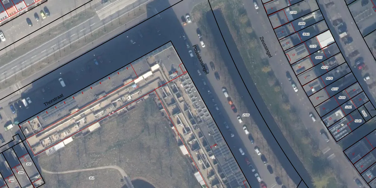 Het perceel waarop Poseidonsingel 58-b staat heeft een oppervlakte van 1,5 ha. Dit is een zeer groot perceel. De perceeloppervlakte wordt geregistreerd door het Kadaster. Gedetailleerde informatie over de maten van dit perceel kunt u vinden in het rapport Kadastrale kaart met maatvoering van Poseidonsingel 58-b.