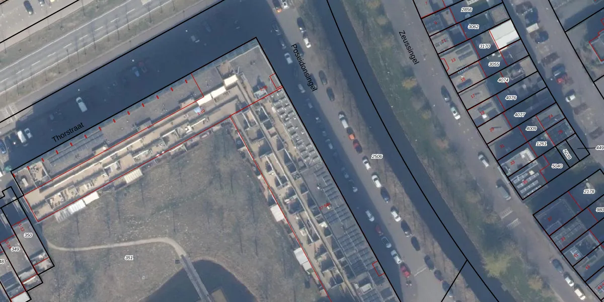 Het perceel waarop Poseidonsingel 58-c staat heeft een oppervlakte van 1,5 ha. Dit is een zeer groot perceel. De perceeloppervlakte wordt geregistreerd door het Kadaster. Gedetailleerde informatie over de maten van dit perceel kunt u vinden in het rapport Kadastrale kaart met maatvoering van Poseidonsingel 58-c.