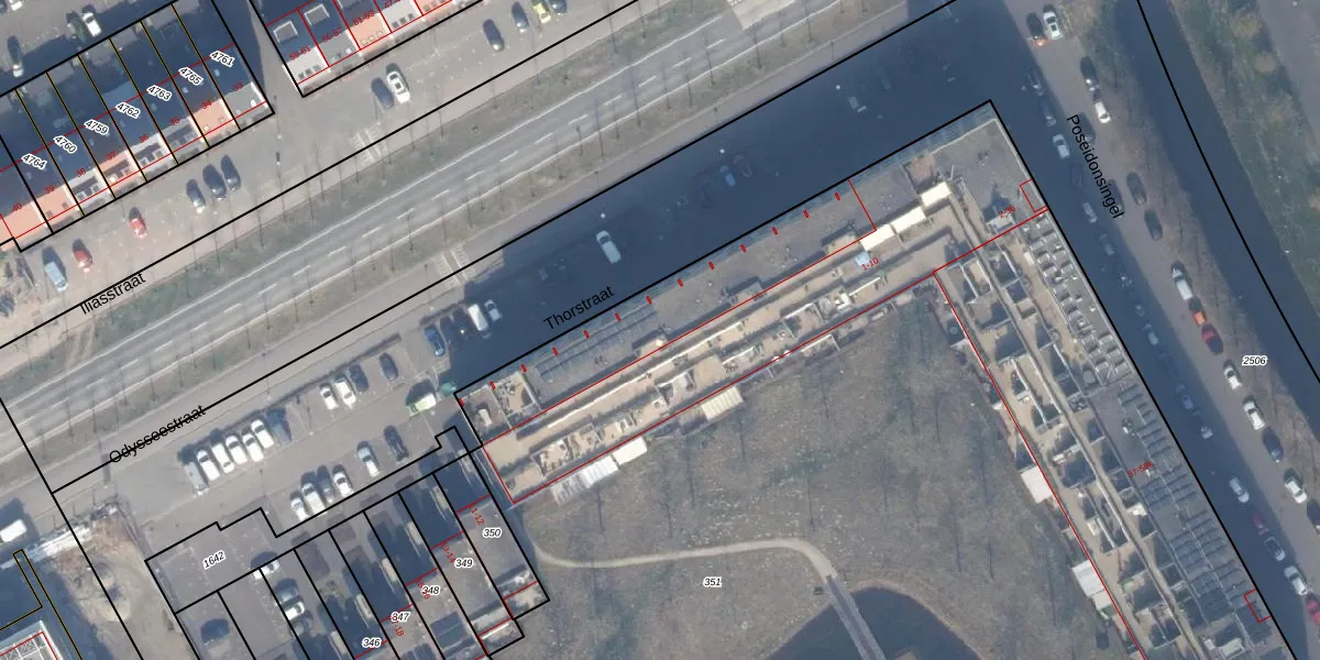 Het perceel waarop Poseidonsingel 7 staat heeft een oppervlakte van 1,5 ha. Dit is een zeer groot perceel. De perceeloppervlakte wordt geregistreerd door het Kadaster. Gedetailleerde informatie over de maten van dit perceel kunt u vinden in het rapport Kadastrale kaart met maatvoering van Poseidonsingel 7.