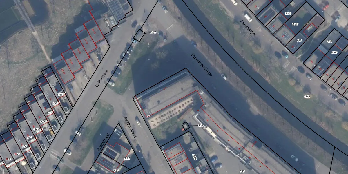 Het perceel waarop Poseidonsingel 73 staat heeft een oppervlakte van 4264 m². Dit is een zeer groot perceel. De perceeloppervlakte wordt geregistreerd door het Kadaster. Gedetailleerde informatie over de maten van dit perceel kunt u vinden in het rapport Kadastrale kaart met maatvoering van Poseidonsingel 73.