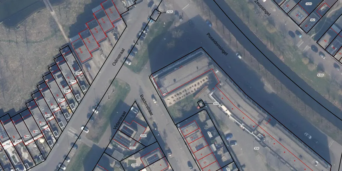 Het perceel waarop Poseidonsingel 89 staat heeft een oppervlakte van 4264 m². Dit is een zeer groot perceel. De perceeloppervlakte wordt geregistreerd door het Kadaster. Gedetailleerde informatie over de maten van dit perceel kunt u vinden in het rapport Kadastrale kaart met maatvoering van Poseidonsingel 89.