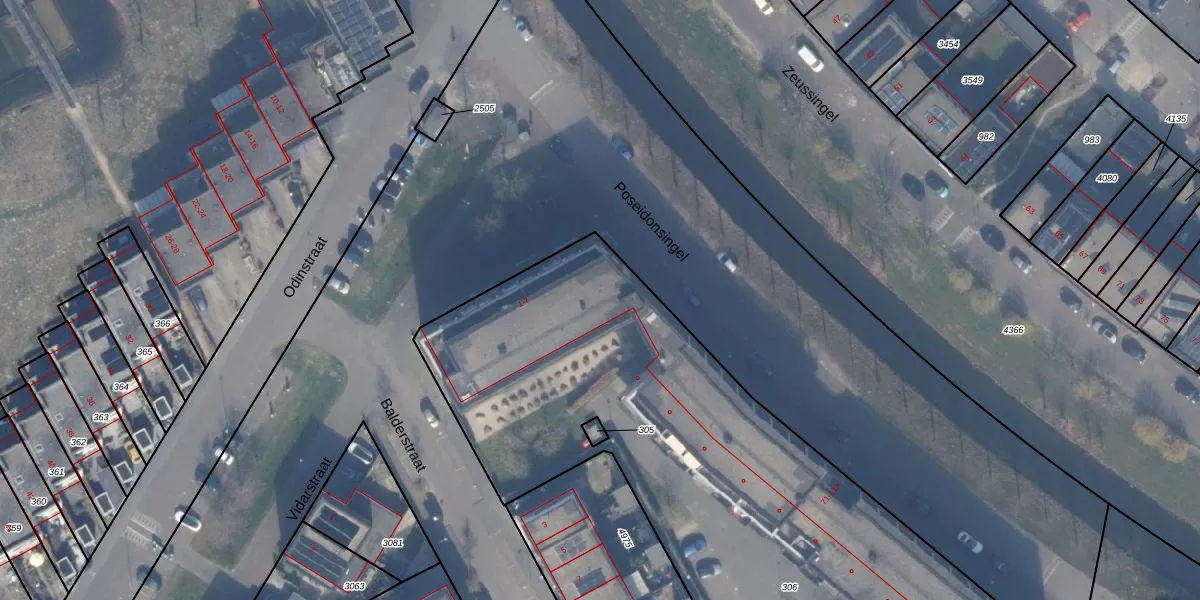 Het perceel waarop Poseidonsingel 92 staat heeft een oppervlakte van 4264 m². Dit is een zeer groot perceel. De perceeloppervlakte wordt geregistreerd door het Kadaster. Gedetailleerde informatie over de maten van dit perceel kunt u vinden in het rapport Kadastrale kaart met maatvoering van Poseidonsingel 92.