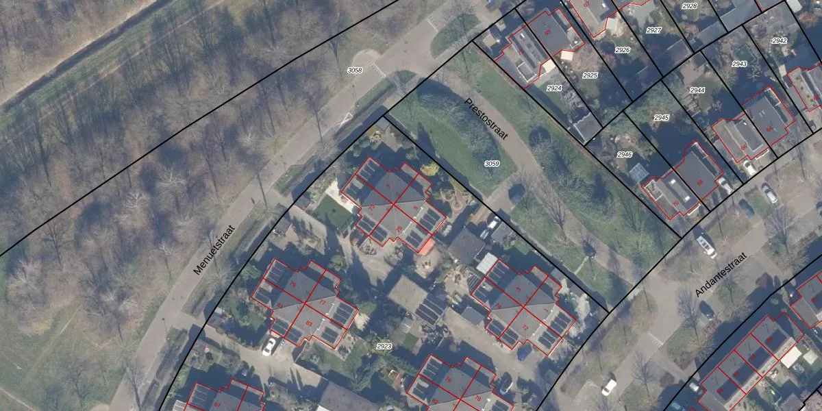 Het perceel waarop Prestostraat 5 staat heeft een oppervlakte van 6655 m². Dit is een zeer groot perceel. De perceeloppervlakte wordt geregistreerd door het Kadaster. Gedetailleerde informatie over de maten van dit perceel kunt u vinden in het rapport Kadastrale kaart met maatvoering van Prestostraat 5.