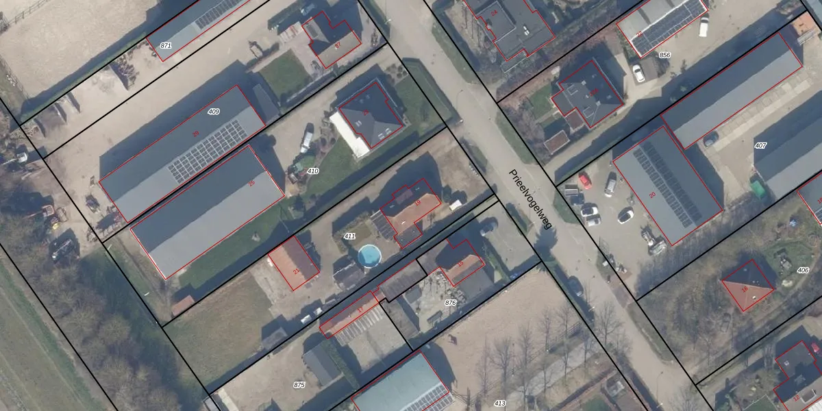 Prieelvogelweg 19 is gelegen op kadastraal perceel AMR04A411. Deze kadastrale aanduiding is uniek en wordt gebruikt door het Kadaster om eigendomsrechten en andere zakelijke rechten vast te leggen. Het perceel maakt onderdeel uit van de kadastrale gemeente Almere.