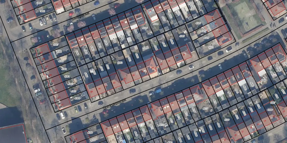 Het perceel waarop Quickstepstraat 56 staat heeft een oppervlakte van 152 m². Dit is een middelgroot perceel. De perceeloppervlakte wordt geregistreerd door het Kadaster. Gedetailleerde informatie over de maten van dit perceel kunt u vinden in het rapport Kadastrale kaart met maatvoering van Quickstepstraat 56.