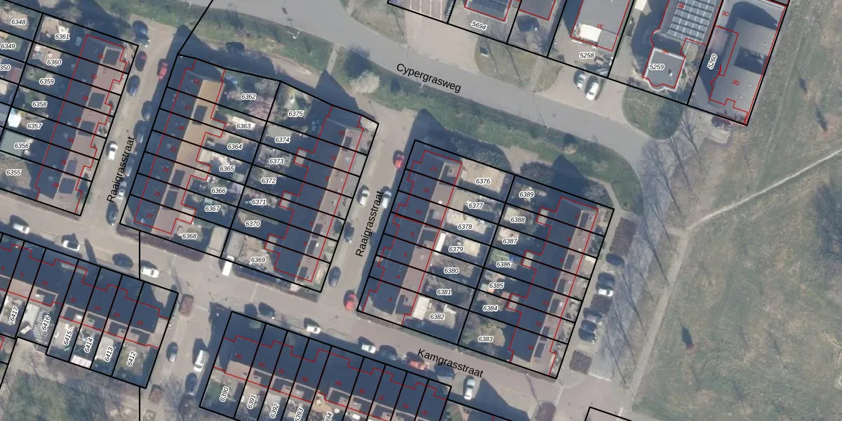 Raaigrasstraat 10 is gelegen op kadastraal perceel AMR04O6378. Deze kadastrale aanduiding is uniek en wordt gebruikt door het Kadaster om eigendomsrechten en andere zakelijke rechten vast te leggen. Het perceel maakt onderdeel uit van de kadastrale gemeente Almere.