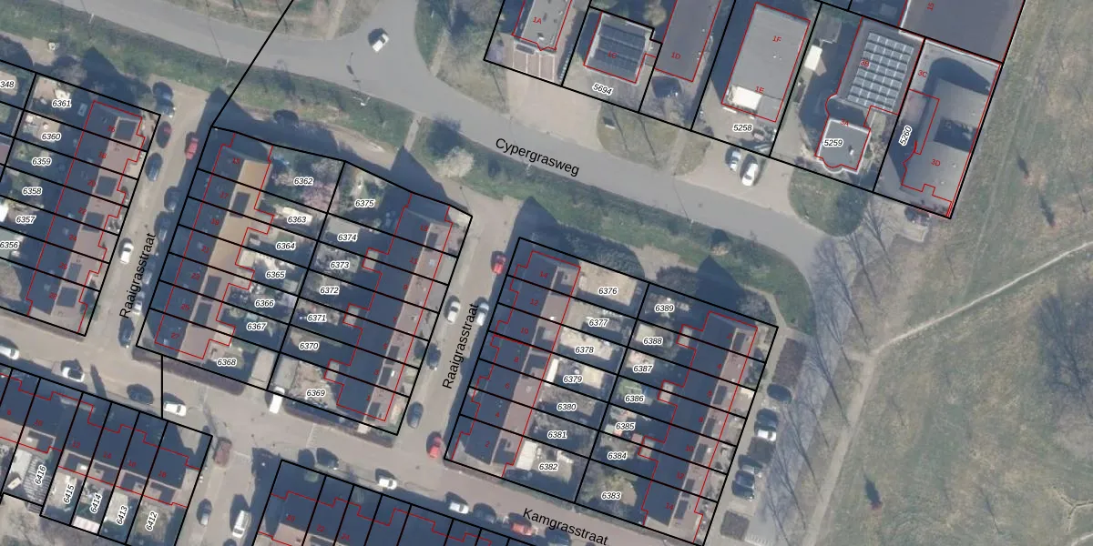 Raaigrasstraat 14 is gelegen op kadastraal perceel AMR04O6376. Deze kadastrale aanduiding is uniek en wordt gebruikt door het Kadaster om eigendomsrechten en andere zakelijke rechten vast te leggen. Het perceel maakt onderdeel uit van de kadastrale gemeente Almere.