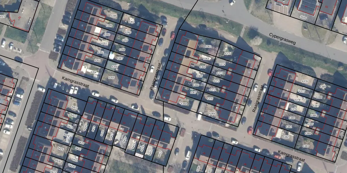 Raaigrasstraat 25 is gelegen op kadastraal perceel AMR04O6367. Deze kadastrale aanduiding is uniek en wordt gebruikt door het Kadaster om eigendomsrechten en andere zakelijke rechten vast te leggen. Het perceel maakt onderdeel uit van de kadastrale gemeente Almere.