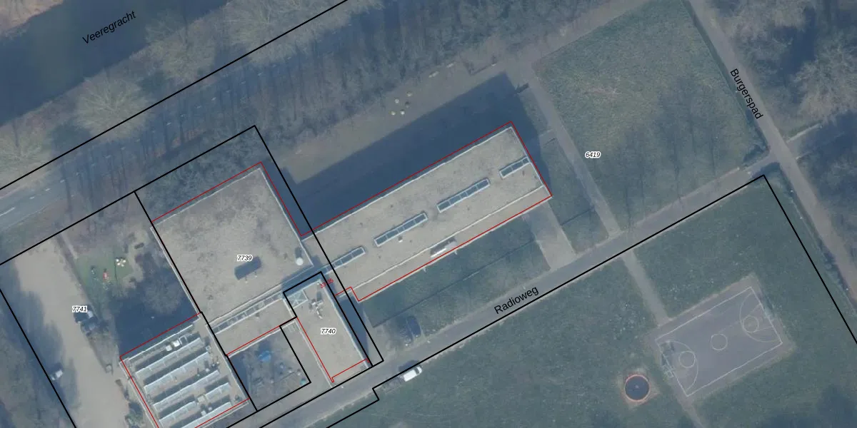 Het perceel waarop Radioweg 35 staat heeft een oppervlakte van 4,3 ha. Dit is een zeer groot perceel. De perceeloppervlakte wordt geregistreerd door het Kadaster. Gedetailleerde informatie over de maten van dit perceel kunt u vinden in het rapport Kadastrale kaart met maatvoering van Radioweg 35.