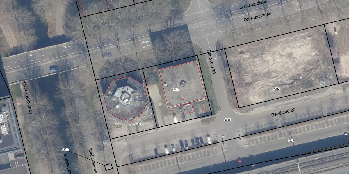Randstad 20 30 is gelegen op kadastraal perceel AMR04O5112. Deze kadastrale aanduiding is uniek en wordt gebruikt door het Kadaster om eigendomsrechten en andere zakelijke rechten vast te leggen. Het perceel maakt onderdeel uit van de kadastrale gemeente Almere.