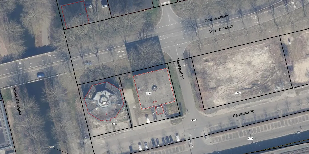 Randstad 20 62 is gelegen op kadastraal perceel AMR04O5112. Deze kadastrale aanduiding is uniek en wordt gebruikt door het Kadaster om eigendomsrechten en andere zakelijke rechten vast te leggen. Het perceel maakt onderdeel uit van de kadastrale gemeente Almere.