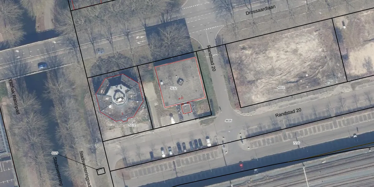 Randstad 20 72 is gelegen op kadastraal perceel AMR04O5112. Deze kadastrale aanduiding is uniek en wordt gebruikt door het Kadaster om eigendomsrechten en andere zakelijke rechten vast te leggen. Het perceel maakt onderdeel uit van de kadastrale gemeente Almere.