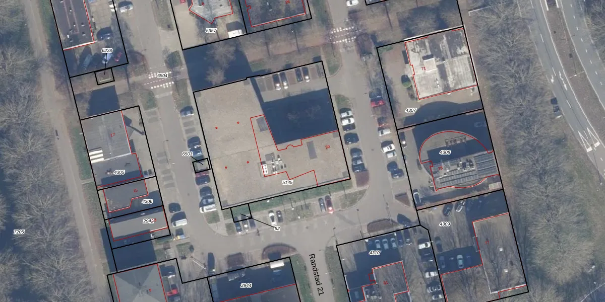 Het perceel waarop Randstad 21 30 staat heeft een oppervlakte van 1758 m². Dit is een zeer groot perceel. De perceeloppervlakte wordt geregistreerd door het Kadaster. Gedetailleerde informatie over de maten van dit perceel kunt u vinden in het rapport Kadastrale kaart met maatvoering van Randstad 21 30.