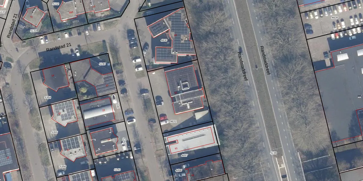 Het perceel waarop Randstad 21 57 staat heeft een oppervlakte van 1000 m². Dit is een zeer groot perceel. De perceeloppervlakte wordt geregistreerd door het Kadaster. Gedetailleerde informatie over de maten van dit perceel kunt u vinden in het rapport Kadastrale kaart met maatvoering van Randstad 21 57.
