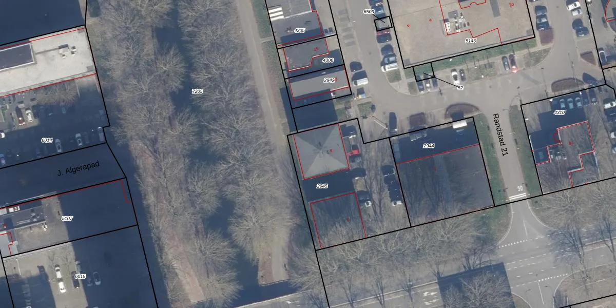 Randstad 21 9-G is gelegen op kadastraal perceel AMR04O2945. Deze kadastrale aanduiding is uniek en wordt gebruikt door het Kadaster om eigendomsrechten en andere zakelijke rechten vast te leggen. Het perceel maakt onderdeel uit van de kadastrale gemeente Almere.