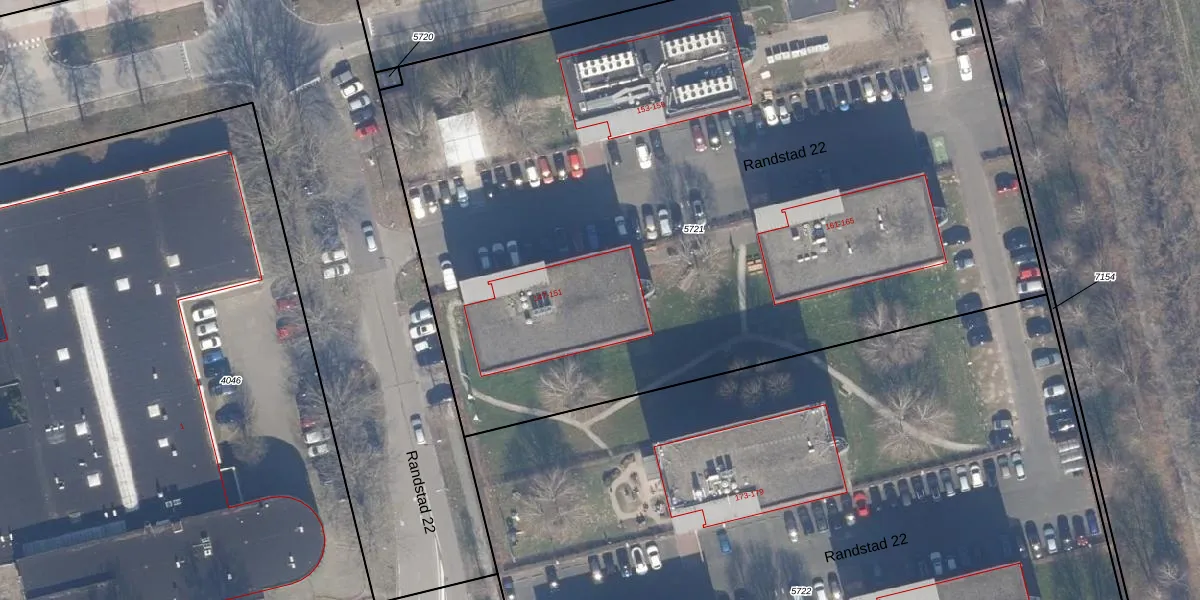 Randstad 22 151 is gelegen op kadastraal perceel AMR04O5721. Deze kadastrale aanduiding is uniek en wordt gebruikt door het Kadaster om eigendomsrechten en andere zakelijke rechten vast te leggen. Het perceel maakt onderdeel uit van de kadastrale gemeente Almere.