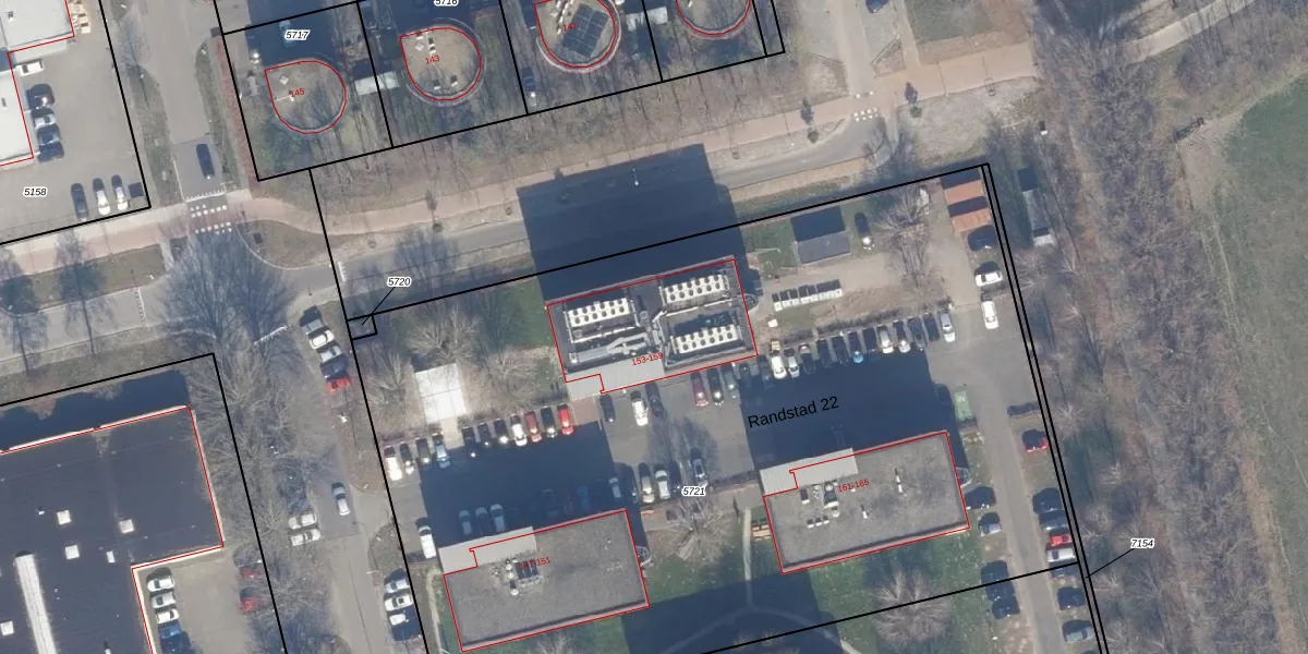 Het perceel waarop Randstad 22 155 staat heeft een oppervlakte van 6238 m². Dit is een zeer groot perceel. De perceeloppervlakte wordt geregistreerd door het Kadaster. Gedetailleerde informatie over de maten van dit perceel kunt u vinden in het rapport Kadastrale kaart met maatvoering van Randstad 22 155.