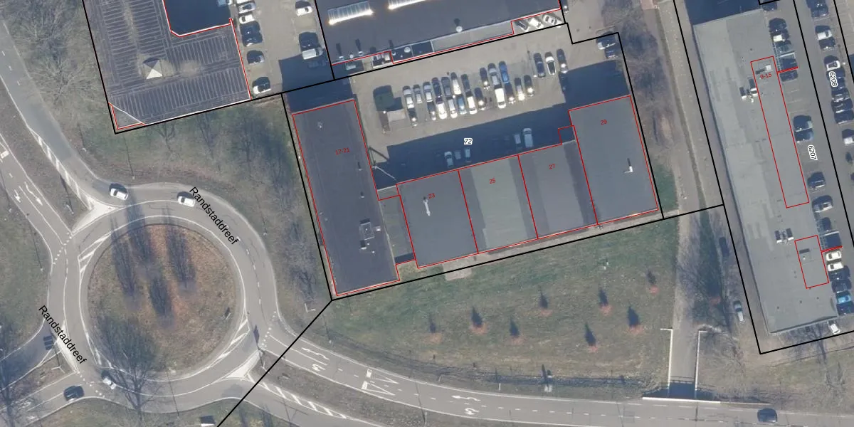 Het perceel waarop Randstad 22 23 staat heeft een oppervlakte van 3946 m². Dit is een zeer groot perceel. De perceeloppervlakte wordt geregistreerd door het Kadaster. Gedetailleerde informatie over de maten van dit perceel kunt u vinden in het rapport Kadastrale kaart met maatvoering van Randstad 22 23.