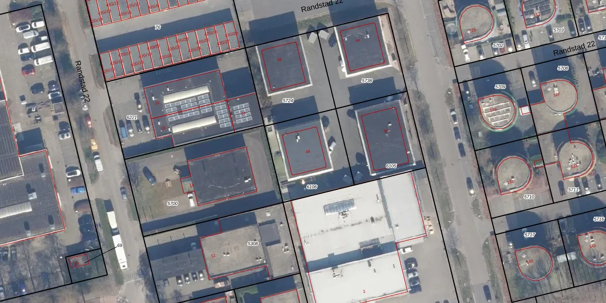 Het perceel waarop Randstad 22 48 staat heeft een oppervlakte van 629 m². Dit is een groot perceel. De perceeloppervlakte wordt geregistreerd door het Kadaster. Gedetailleerde informatie over de maten van dit perceel kunt u vinden in het rapport Kadastrale kaart met maatvoering van Randstad 22 48.