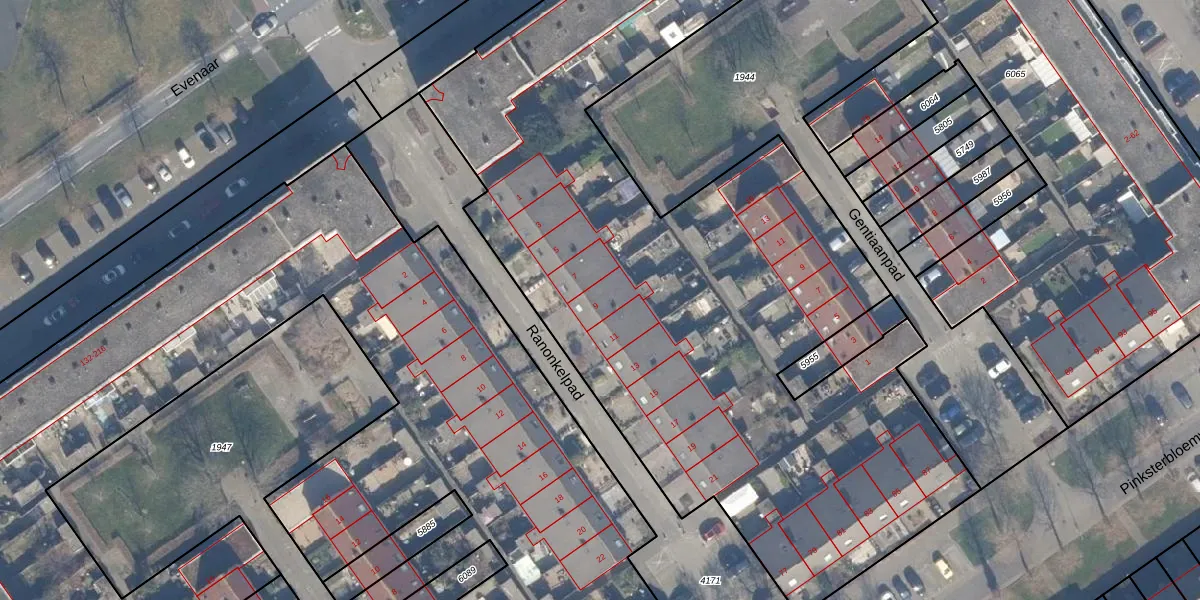 Het adres is gelegen op perceel 6065 in de sectie N en de kadastrale gemeente Almere. De kadastrale aanduiding is aldus AMR04-N-6065. De oppervlakte van het perceel is 8354 m². Dat is groter dan gemiddeld in Almere, waar de gemiddelde perceeloppervlakte op 3328,29 m² ligt. Het kleinste perceel in de kadastrale gemeente is 0 m² groot. De grootste perceeloppervlakte is 32,12 km². Op het perceel liggen in totaal 105 adressen. De huidige grenzen van het perceel zijn digitaal in de Basisregistratie Kadaster (BRK) geregistreerd op 12-10-2006.