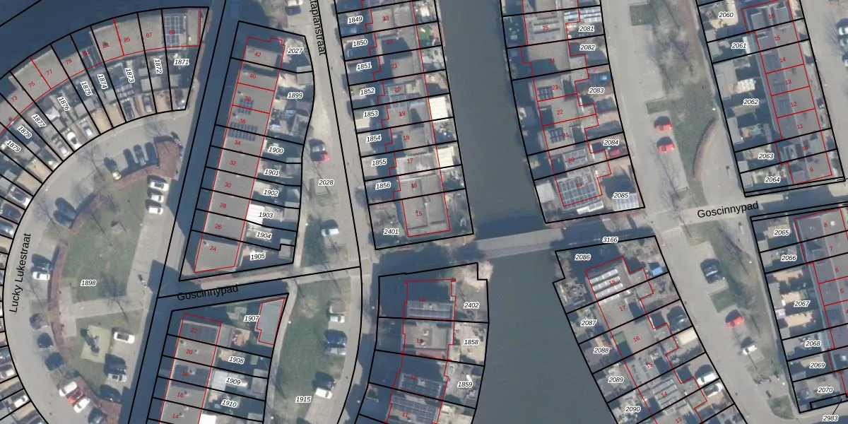 Gebruik de zoekbalk of klik op een perceel voor informatie over de adressen binnen dit perceel.
