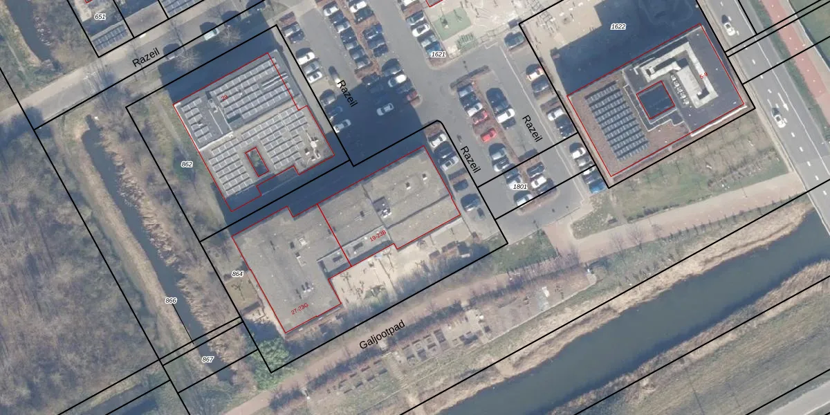 Het perceel waarop Razeil 23-A staat heeft een oppervlakte van 2290 m². Dit is een zeer groot perceel. De perceeloppervlakte wordt geregistreerd door het Kadaster. Gedetailleerde informatie over de maten van dit perceel kunt u vinden in het rapport Kadastrale kaart met maatvoering van Razeil 23-A.