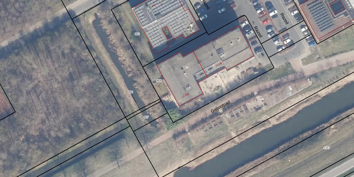 Het perceel waarop Razeil 23-F staat heeft een oppervlakte van 2290 m². Dit is een zeer groot perceel. De perceeloppervlakte wordt geregistreerd door het Kadaster. Gedetailleerde informatie over de maten van dit perceel kunt u vinden in het rapport Kadastrale kaart met maatvoering van Razeil 23-F.