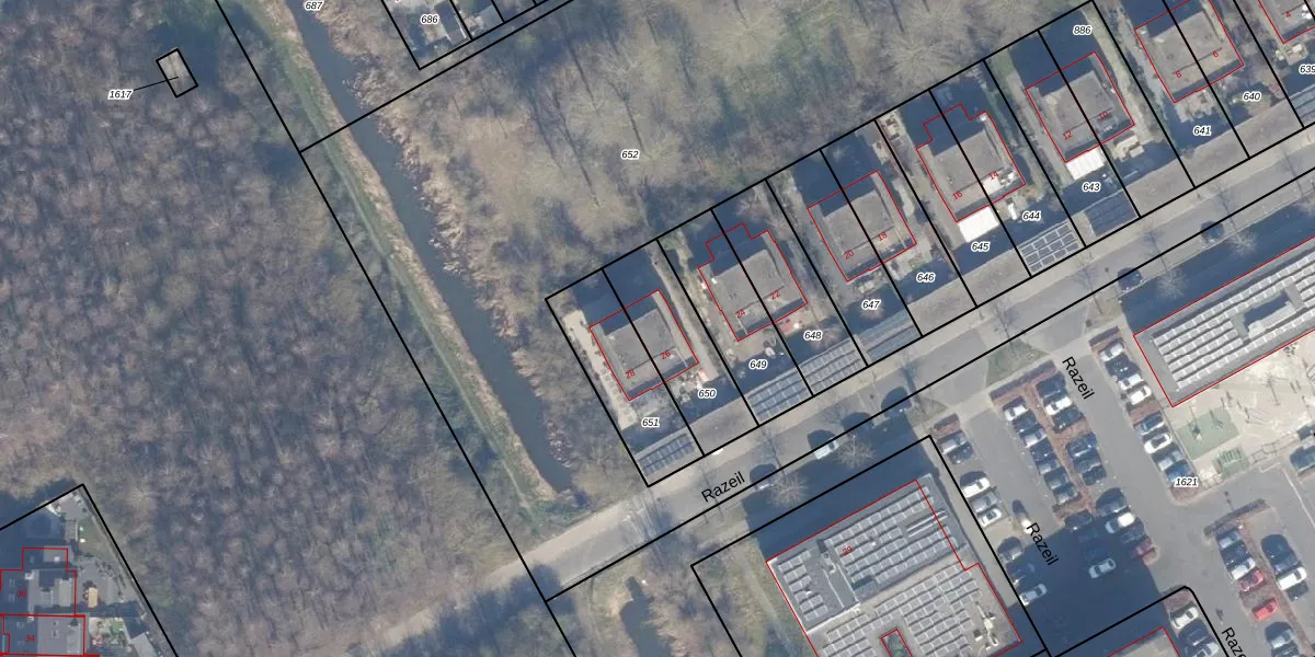 Het perceel waarop Razeil 26 staat heeft een oppervlakte van 308 m². Dit is een groot perceel. De perceeloppervlakte wordt geregistreerd door het Kadaster. Gedetailleerde informatie over de maten van dit perceel kunt u vinden in het rapport Kadastrale kaart met maatvoering van Razeil 26.