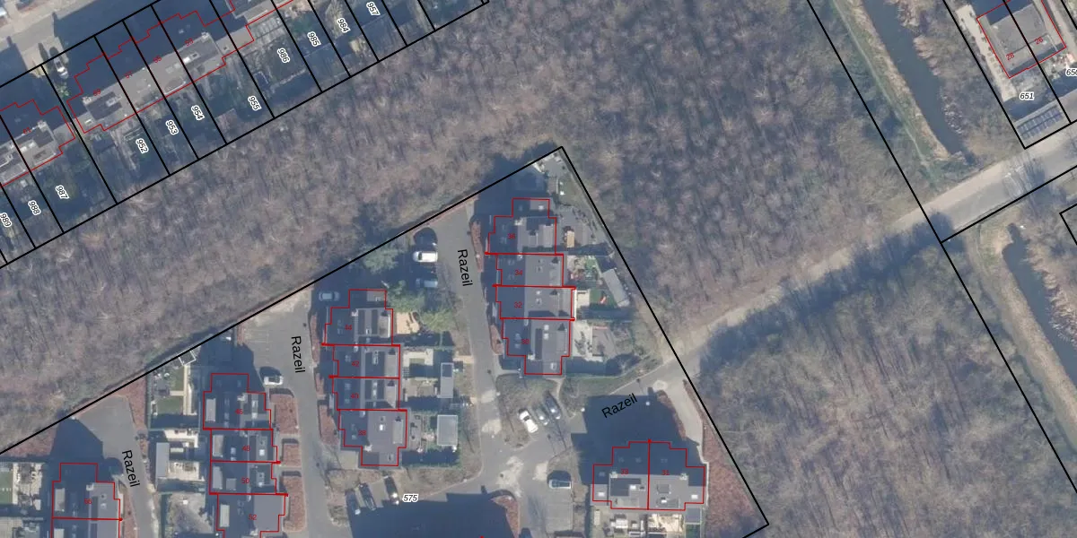 Het perceel waarop Razeil 34 staat heeft een oppervlakte van 1,0 ha. Dit is een zeer groot perceel. De perceeloppervlakte wordt geregistreerd door het Kadaster. Gedetailleerde informatie over de maten van dit perceel kunt u vinden in het rapport Kadastrale kaart met maatvoering van Razeil 34.