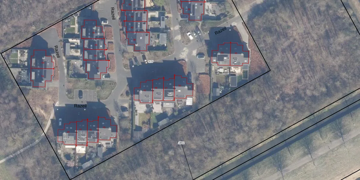 Het perceel waarop Razeil 35 staat heeft een oppervlakte van 1,0 ha. Dit is een zeer groot perceel. De perceeloppervlakte wordt geregistreerd door het Kadaster. Gedetailleerde informatie over de maten van dit perceel kunt u vinden in het rapport Kadastrale kaart met maatvoering van Razeil 35.