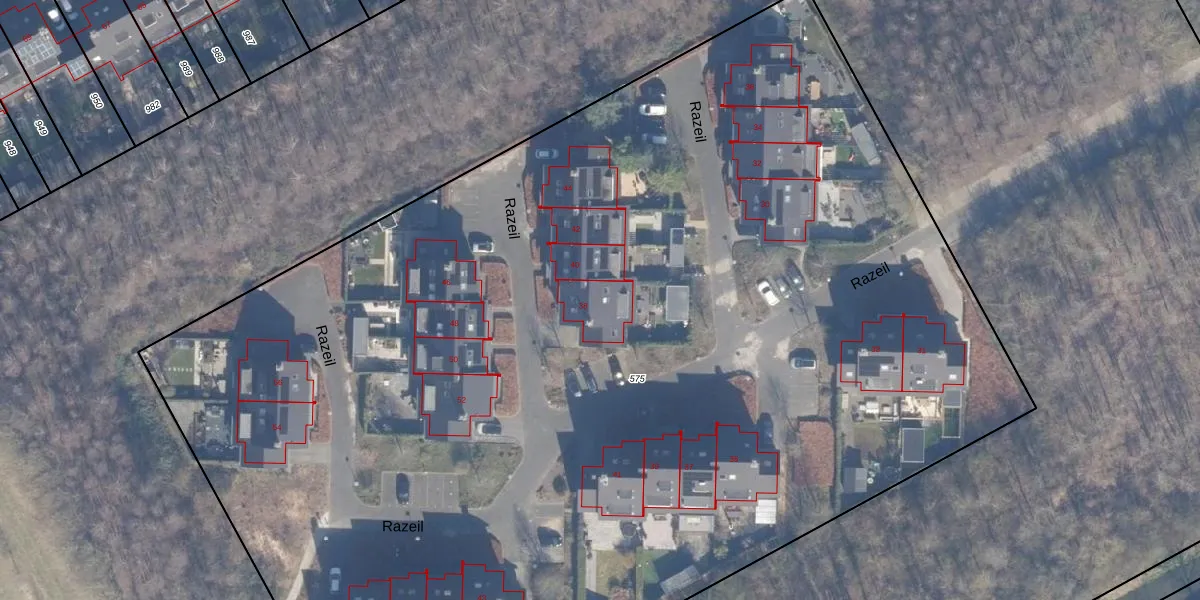 Het perceel waarop Razeil 38 staat heeft een oppervlakte van 1,0 ha. Dit is een zeer groot perceel. De perceeloppervlakte wordt geregistreerd door het Kadaster. Gedetailleerde informatie over de maten van dit perceel kunt u vinden in het rapport Kadastrale kaart met maatvoering van Razeil 38.