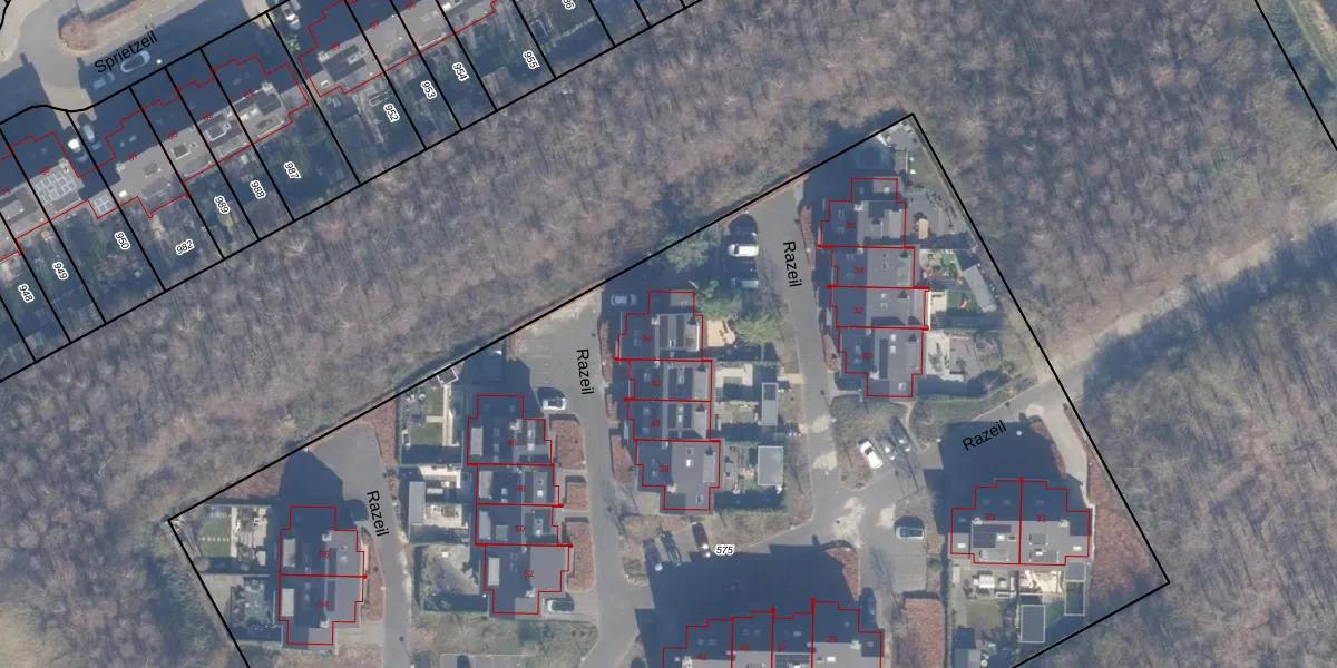 Het perceel waarop Razeil 44 staat heeft een oppervlakte van 1,0 ha. Dit is een zeer groot perceel. De perceeloppervlakte wordt geregistreerd door het Kadaster. Gedetailleerde informatie over de maten van dit perceel kunt u vinden in het rapport Kadastrale kaart met maatvoering van Razeil 44.