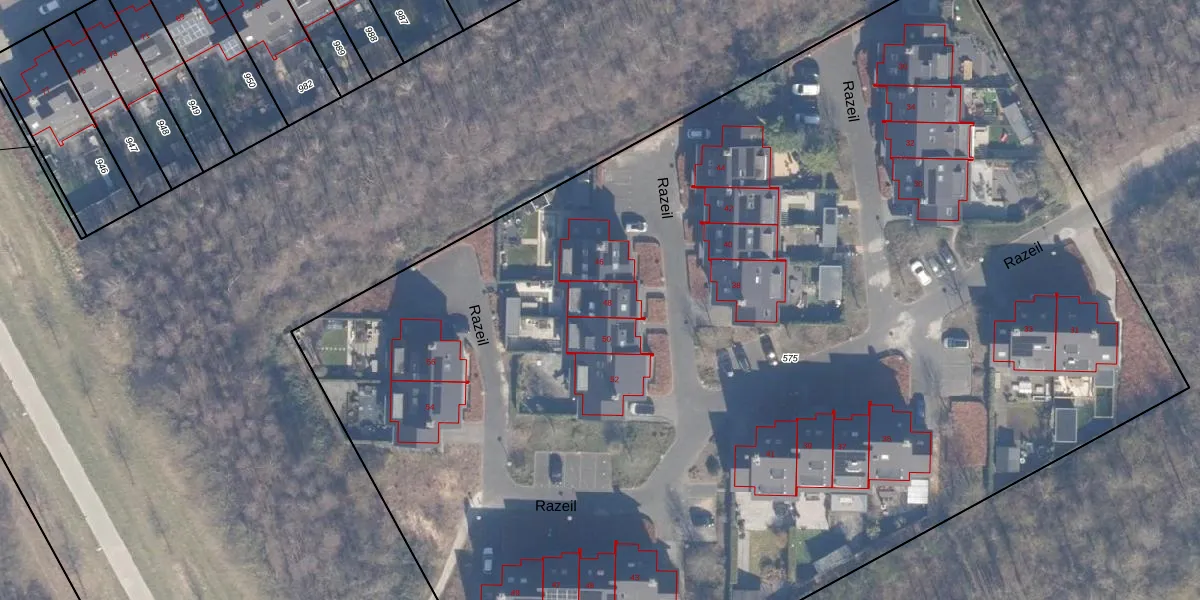 Het perceel waarop Razeil 48 staat heeft een oppervlakte van 1,0 ha. Dit is een zeer groot perceel. De perceeloppervlakte wordt geregistreerd door het Kadaster. Gedetailleerde informatie over de maten van dit perceel kunt u vinden in het rapport Kadastrale kaart met maatvoering van Razeil 48.