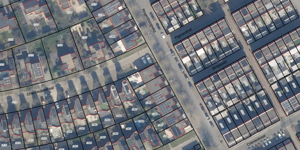 Regenboogweg 100 is gelegen op kadastraal perceel AMR04B1283. Deze kadastrale aanduiding is uniek en wordt gebruikt door het Kadaster om eigendomsrechten en andere zakelijke rechten vast te leggen. Het perceel maakt onderdeel uit van de kadastrale gemeente Almere.