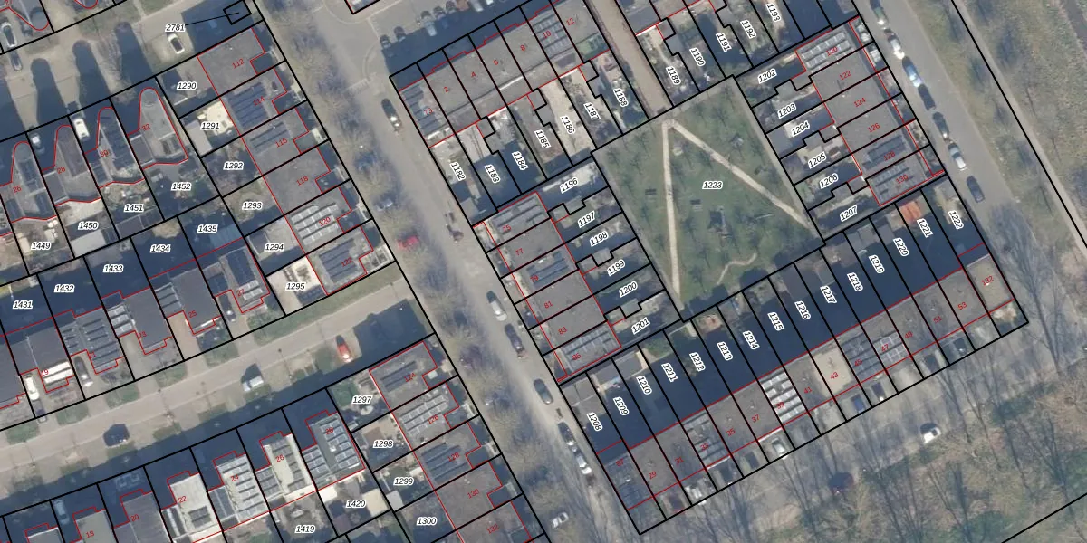 Het adres is gelegen op perceel 1198 in de sectie B en de kadastrale gemeente Almere. De kadastrale aanduiding is aldus AMR04-B-1198. Het perceel is 140 m² groot. Dat is kleiner dan de gemiddelde perceeloppervlakte in Almere, dat op 3328,15 m² ligt. Het kleinste perceel in de kadastrale gemeente is 0 m² groot. De grootste perceeloppervlakte is 32,12 km². Dit is het enige adres dat aanwezig is op het perceel. In de Basisregistratie Kadaster (BRK) werden de grenzen van het perceel geregistreerd op 30-08-2004.