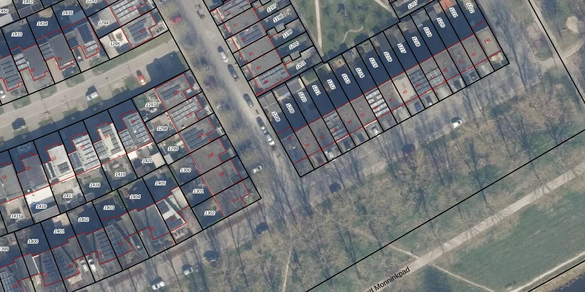 Het adres is gelegen op perceel 1208 in de sectie B en de kadastrale gemeente Almere. De kadastrale aanduiding is aldus AMR04-B-1208. Het perceel is 175 m² groot. Dat is kleiner dan de gemiddelde perceeloppervlakte in Almere, dat op 3328,15 m² ligt. Het kleinste perceel in de kadastrale gemeente is 0 m² groot. De grootste perceeloppervlakte is 32,12 km². Er zijn geen andere adressen aanwezig op het perceel. De huidige grenzen van het perceel zijn digitaal in de Basisregistratie Kadaster (BRK) geregistreerd op 30-08-2004.