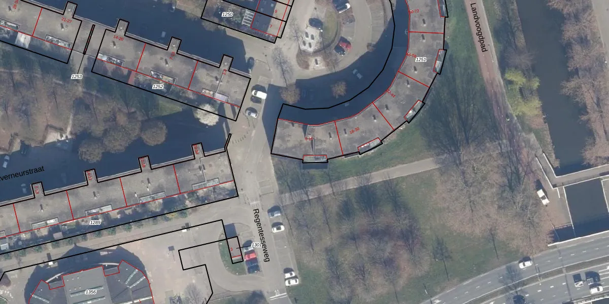 Regentesseweg 14 is gelegen op kadastraal perceel AMR04K1251. Deze kadastrale aanduiding is uniek en wordt gebruikt door het Kadaster om eigendomsrechten en andere zakelijke rechten vast te leggen. Het perceel maakt onderdeel uit van de kadastrale gemeente Almere.