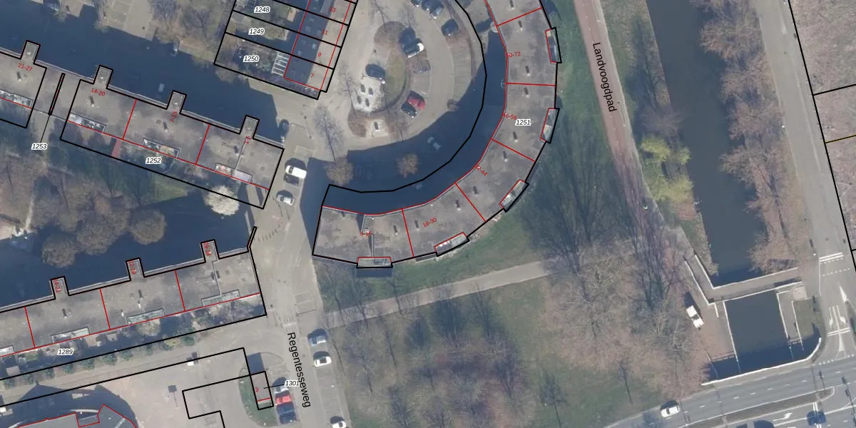Regentesseweg 18 is gelegen op kadastraal perceel AMR04K1251. Deze kadastrale aanduiding is uniek en wordt gebruikt door het Kadaster om eigendomsrechten en andere zakelijke rechten vast te leggen. Het perceel maakt onderdeel uit van de kadastrale gemeente Almere.
