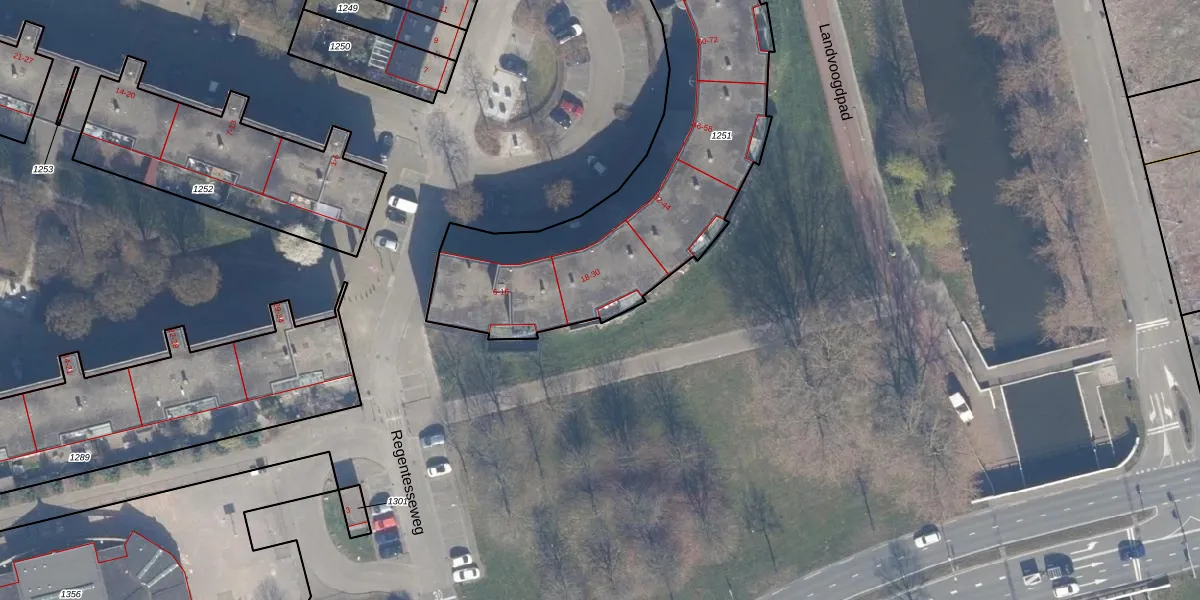 Regentesseweg 30 is gelegen op kadastraal perceel AMR04K1251. Deze kadastrale aanduiding is uniek en wordt gebruikt door het Kadaster om eigendomsrechten en andere zakelijke rechten vast te leggen. Het perceel maakt onderdeel uit van de kadastrale gemeente Almere.