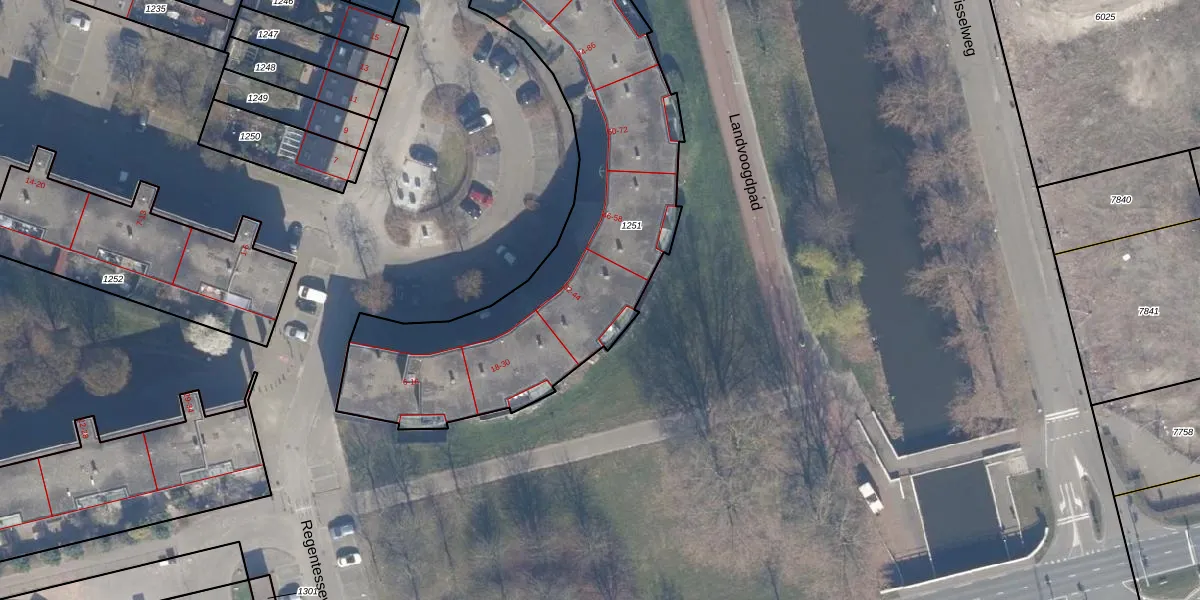 Regentesseweg 40 is gelegen op kadastraal perceel AMR04K1251. Deze kadastrale aanduiding is uniek en wordt gebruikt door het Kadaster om eigendomsrechten en andere zakelijke rechten vast te leggen. Het perceel maakt onderdeel uit van de kadastrale gemeente Almere.