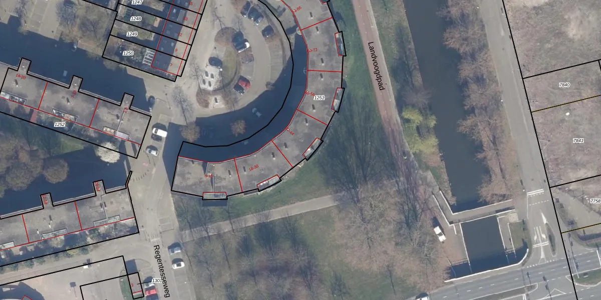 Regentesseweg 42 is gelegen op kadastraal perceel AMR04K1251. Deze kadastrale aanduiding is uniek en wordt gebruikt door het Kadaster om eigendomsrechten en andere zakelijke rechten vast te leggen. Het perceel maakt onderdeel uit van de kadastrale gemeente Almere.
